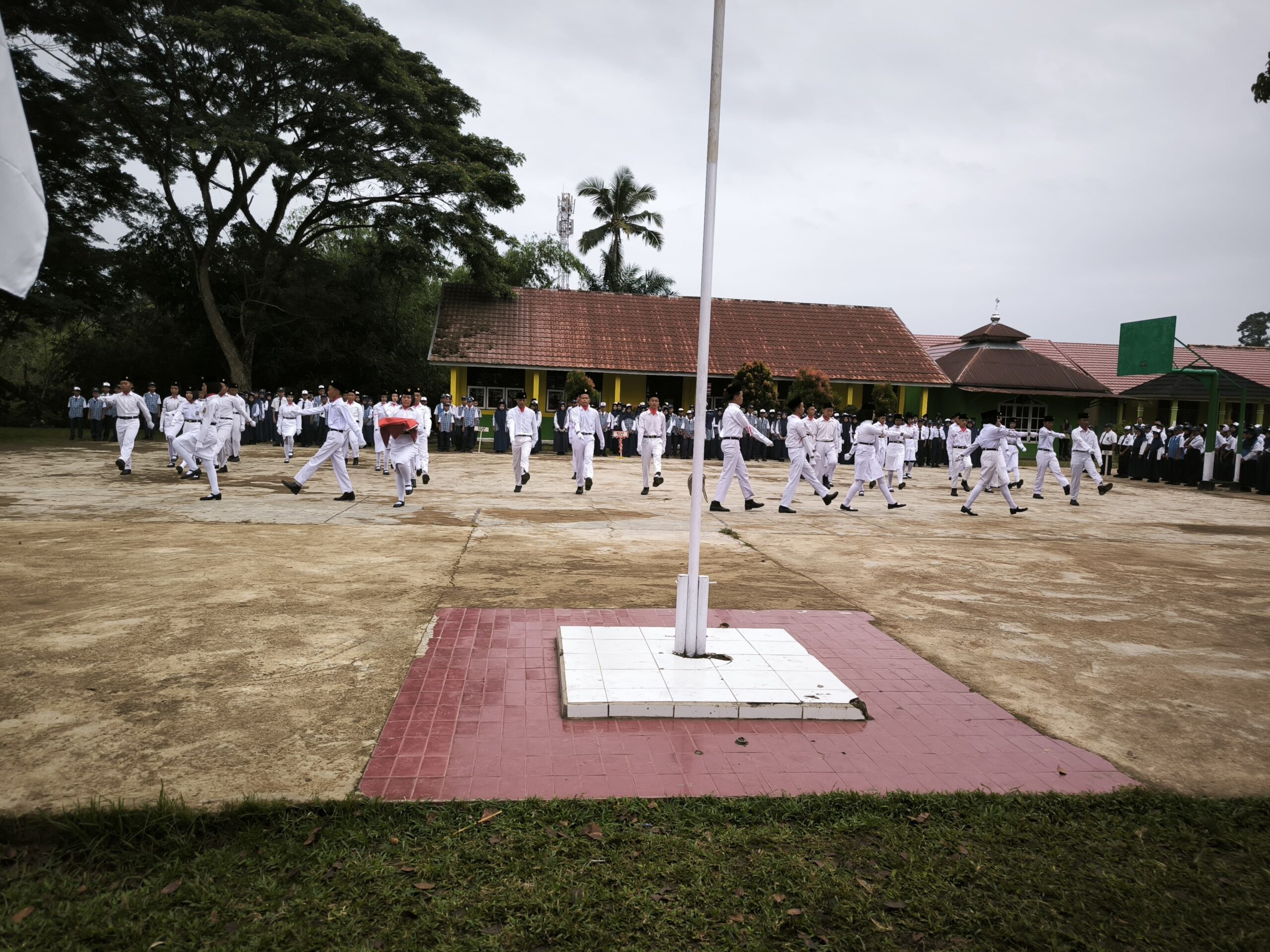 Meski tidak berada di tengah siswa, pesan kebanggaan dan semangat tetap mengalir lewat amanat yang dibacakan Ibu Santi. Dalam pesannya, Kepala Sekolah menekankan pentingnya menumbuhkan patriotisme, menjaga persatuan, serta menanamkan nilai gotong royong di setiap langkah kehidupan para pelajar.